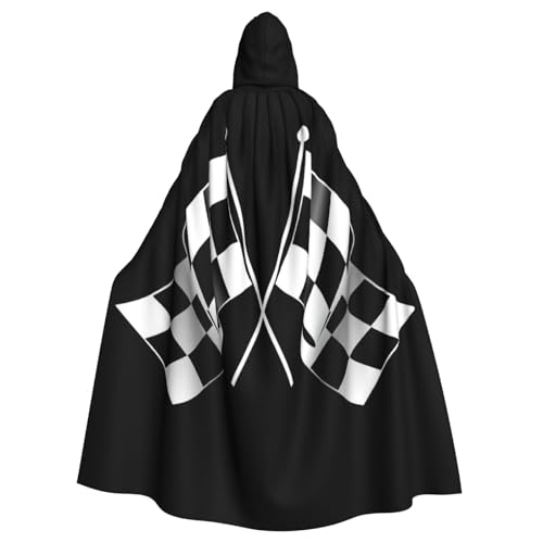 YQxwJL Black White Checkered Flags Print Unisex Hooded Cape Cloak, carnival Cloak with Hood for Witch Raven Cosplay Costume