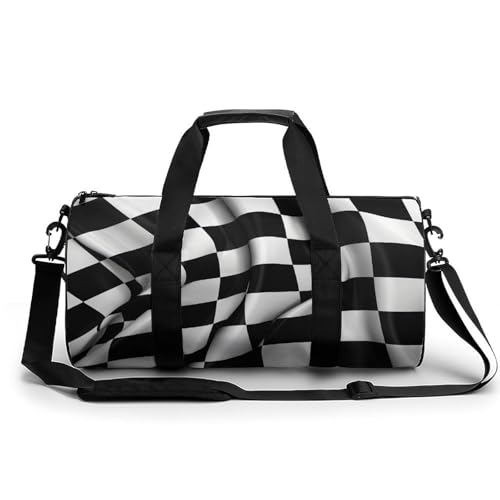 Sports Gym Bag for Women Men Travel Duffel Bag Tote Weekender Bag Black White Checkered Flags Carry on Overnight Bag for Travel Swimming Fitness Workout Sports Duffle Bag