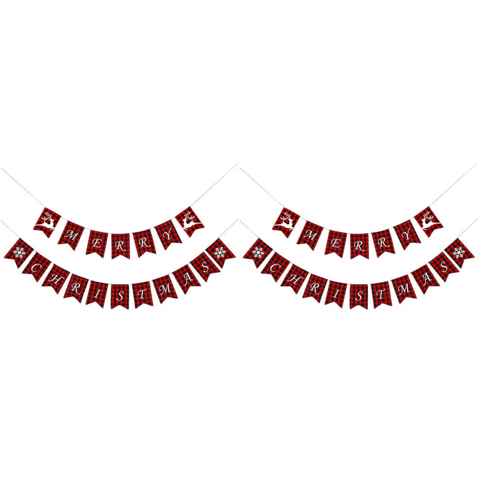 2Sets Christmas Banners Red Black Cotton Fishtail Flags Party Decor
