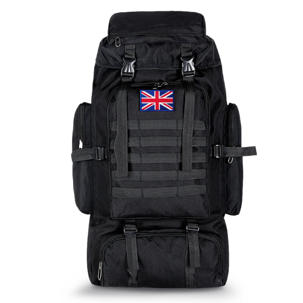 Lesbyit 80L Waterproof Hiking Backpack, Lightweight Tactical Rucksack for Camping & Travel, Large Capacity, with 2 British Flags, Black (BLACK) (Black)