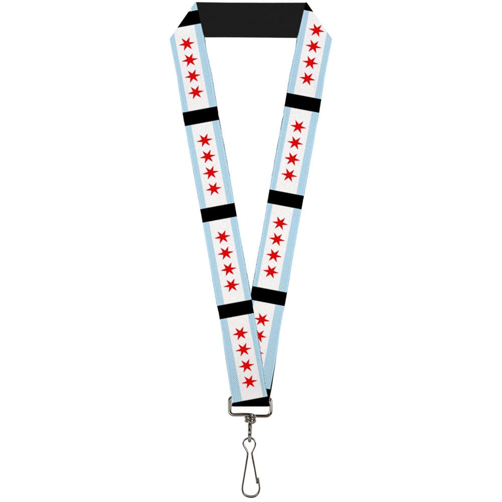 Buckle-Down Lanyard-1.0"-Chicago Flags/Black 22" x 1" Multicolor (US IMPORT)