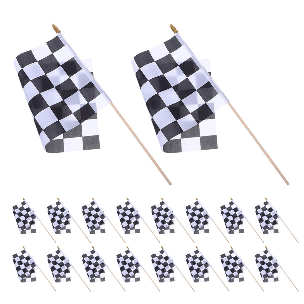 16Pcs Small Durable Racing Flags Black White Checkered Party Supplies