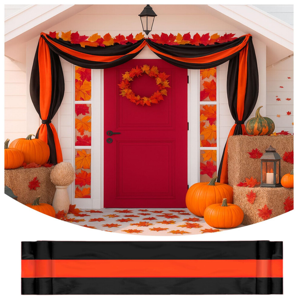 LinaGarten Fall Bunting Thanksgiving Day D?cor Autumn Banner Halloween Bunting Flag- 3 Stripe Orange & Black Bunting Flags Trick or Treat Decor Outsi