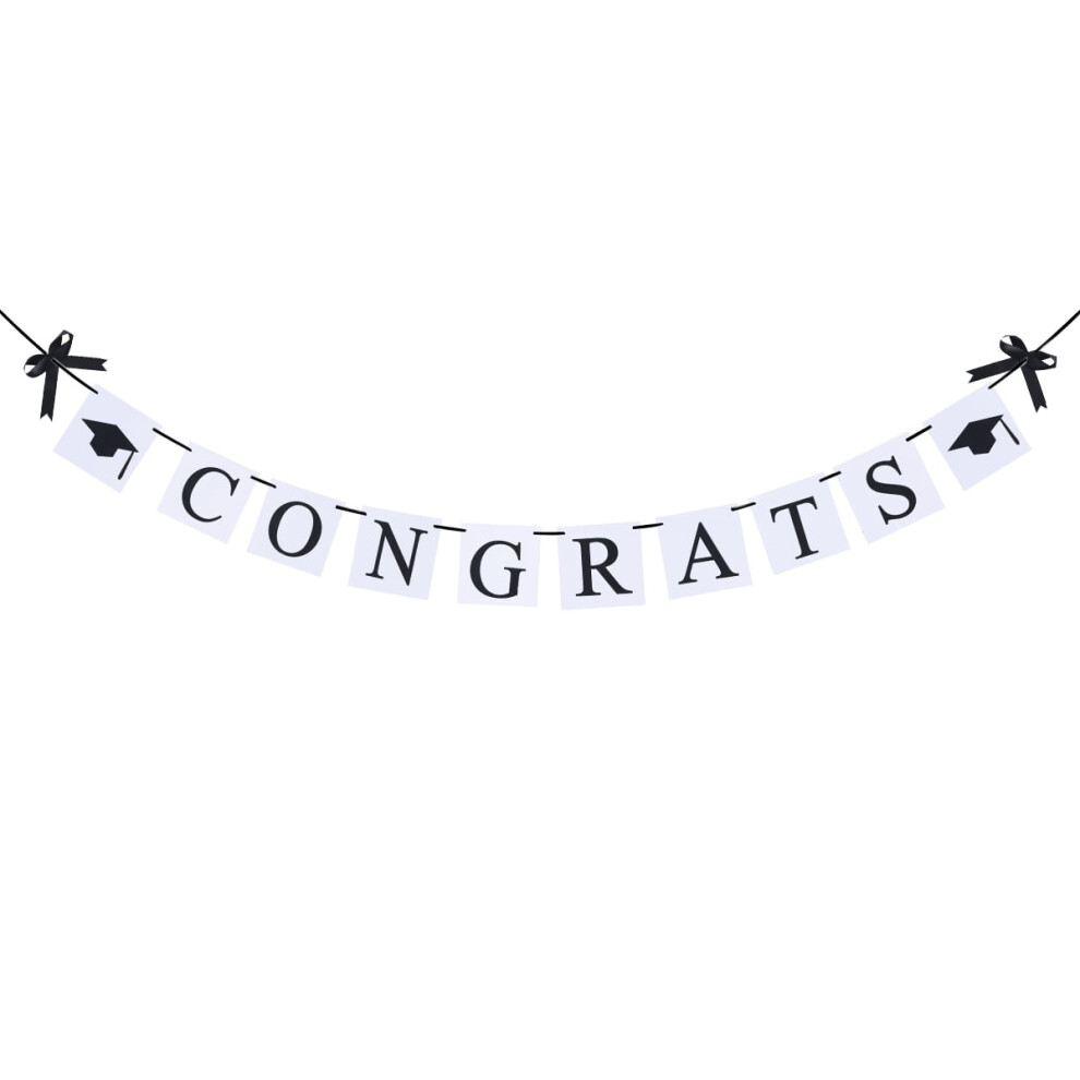 Graduation Bunting Banner â CONGRATS Sign, Doctoral Pearl Paper Square Flags, Black Garland Party Decoration