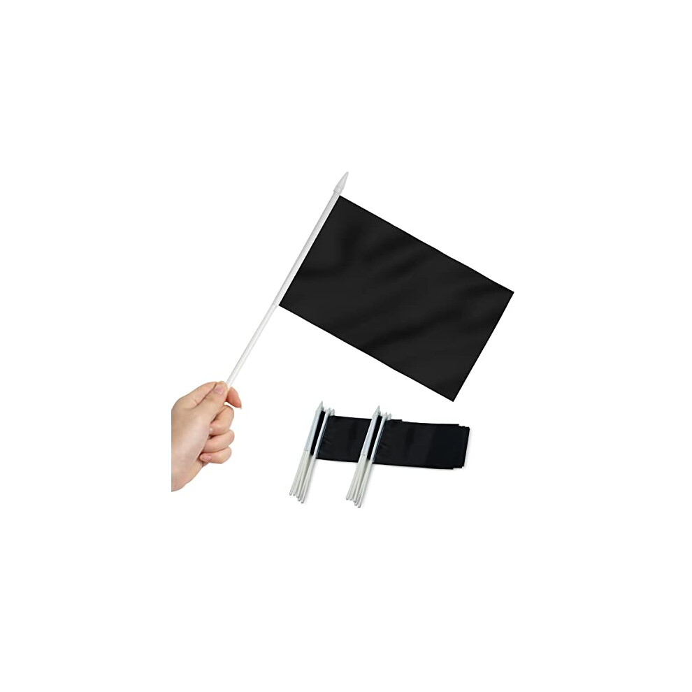 Black Mini Flag 12 Pack - Hand Held Small Miniature Solid Black Blank Flags on Stick - Fade Resistant & Vivid Colors - 5x8 Inch with Solid Pole &