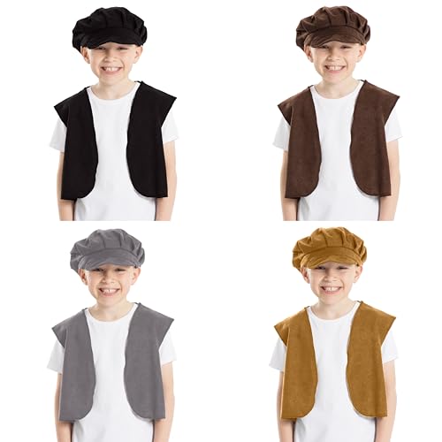 Fun Shack Victorian Costume Boys, Boys Victorian Costume, Kids Waistcoat and Flat Cap, Halloween Costumes for Kids, Large Black