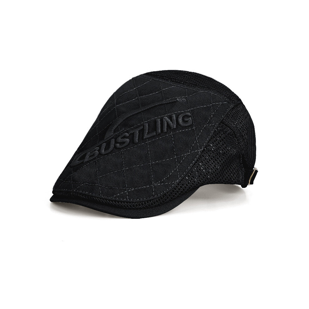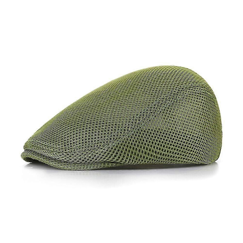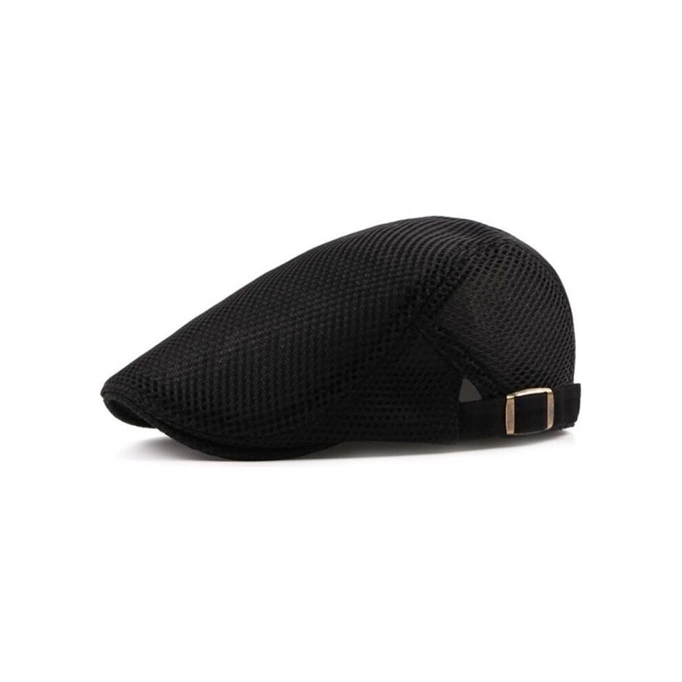(As show, black) Men's Flat Cap Breathable Mesh Summer Hat Flat Cap Beret Ivy Newsboy Cabbie Cap