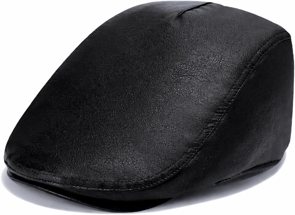 Menâs Black Leather Look Flat Cap â Classic Ivy Cap, One Size Fits All (57â