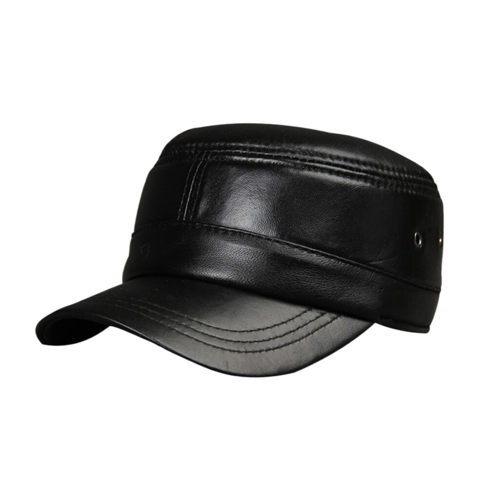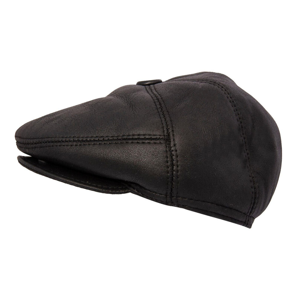 (Black, 57) Genuine Black Leather Flat Cap English Granddad Baker-boy Hat Arthur