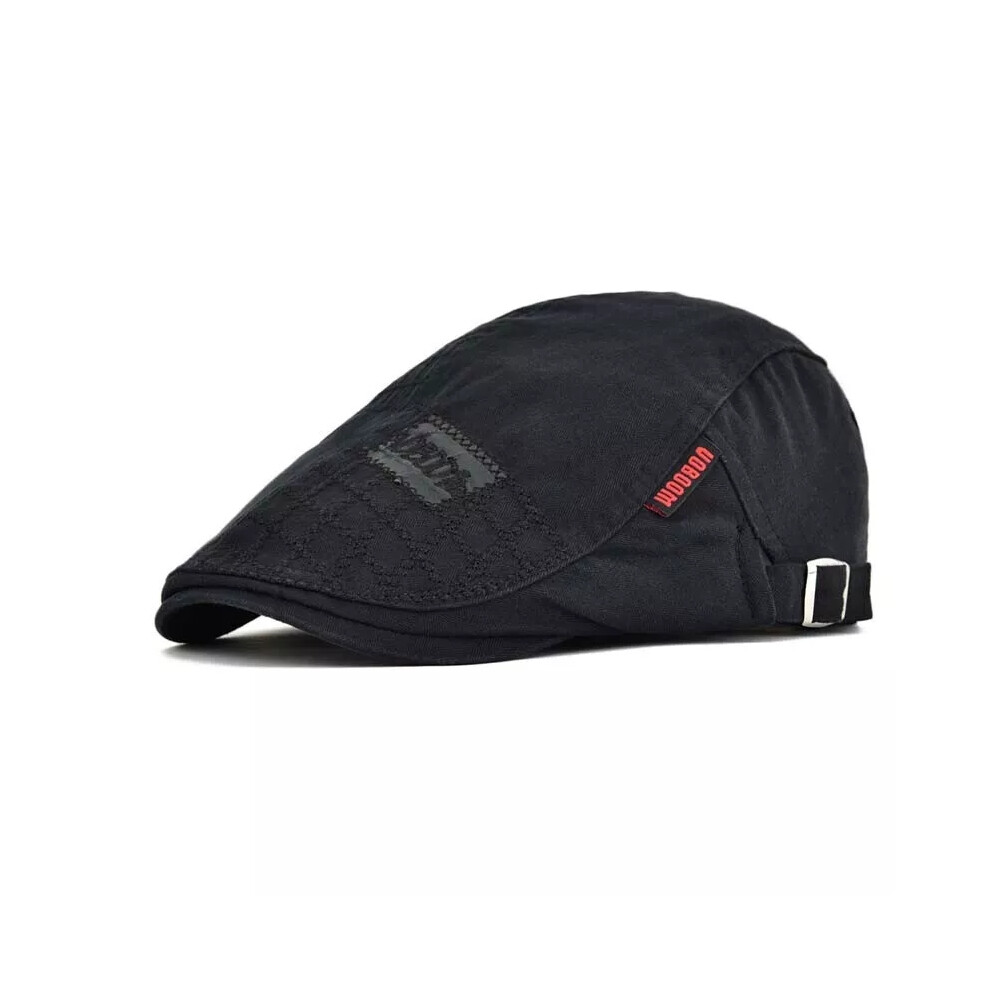 Men's Black Flat Cap - Duckbill - Newsboy Cap, Taxi Driver, Golf, Hunting, Ivy - Polyester