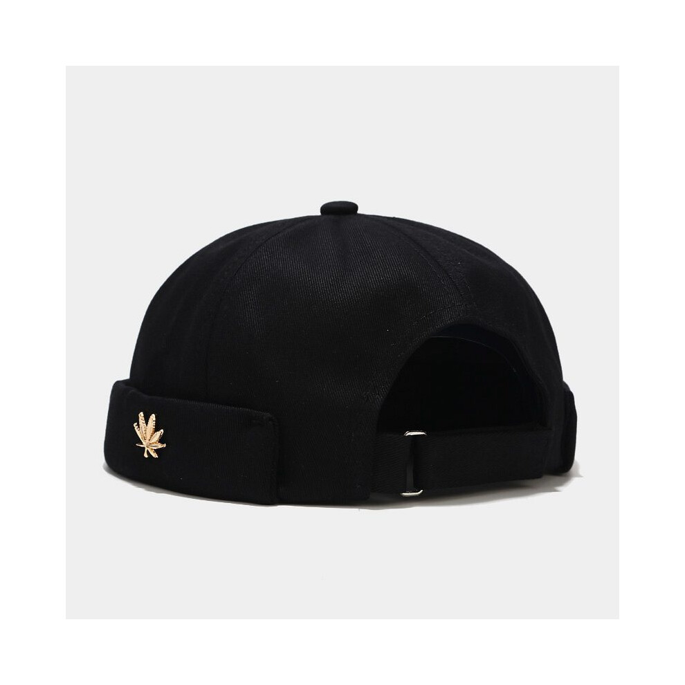 (Black) Flat Casual Top Cap With Maple Leaf Decoration And Adjustable Strap For Daily