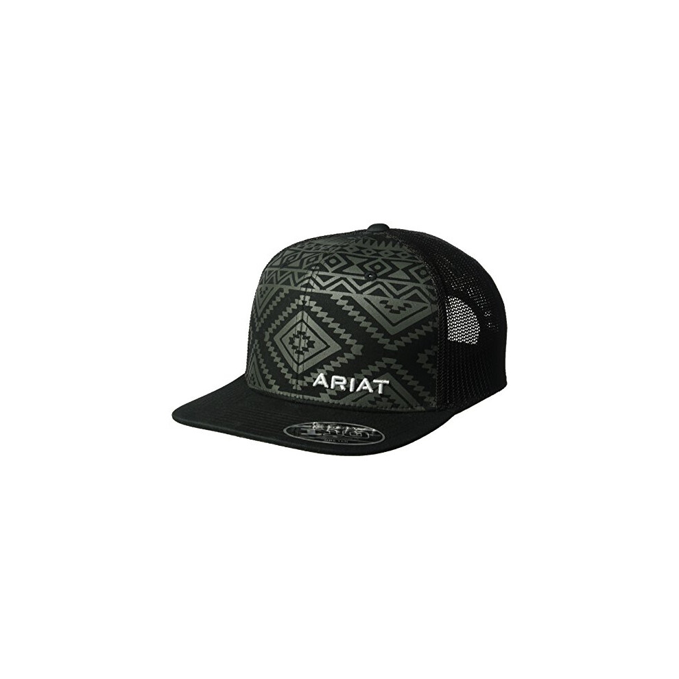 ARIAT Men's Aztec Black Flat Bill Cap Baseball, M/One Size