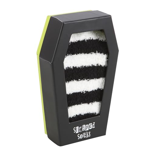 Something Different Wholesale Gothic Style Striped Socks in Coffin Gift Box: Embrace the Darkness with Fluffy Black and White Socks - Gift for Emo Enthusiasts!