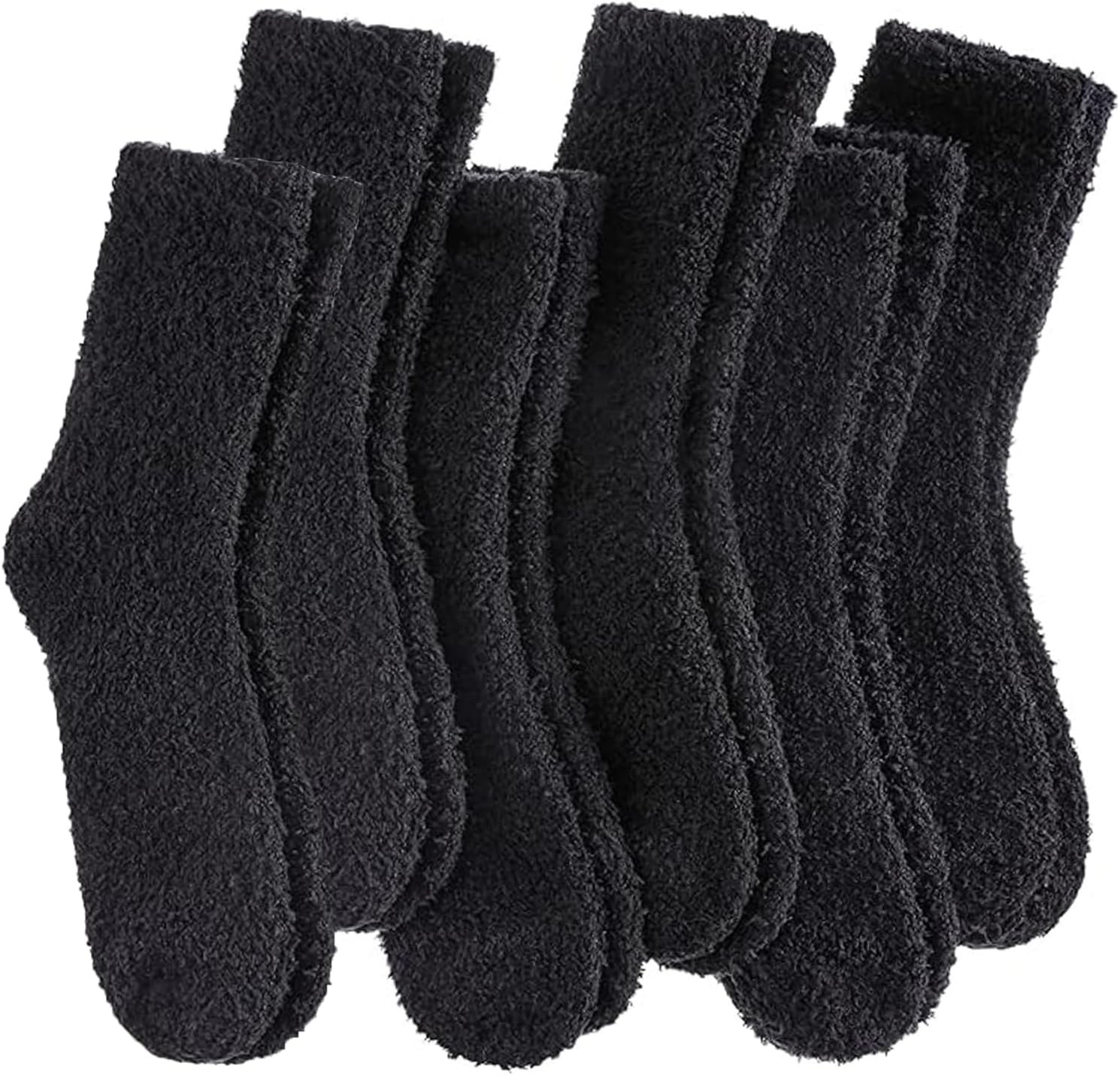 WORUIB 6 Pairs Black Fluffy Socks, Womens Fluffy Socks Black, Ultra Soft Plush