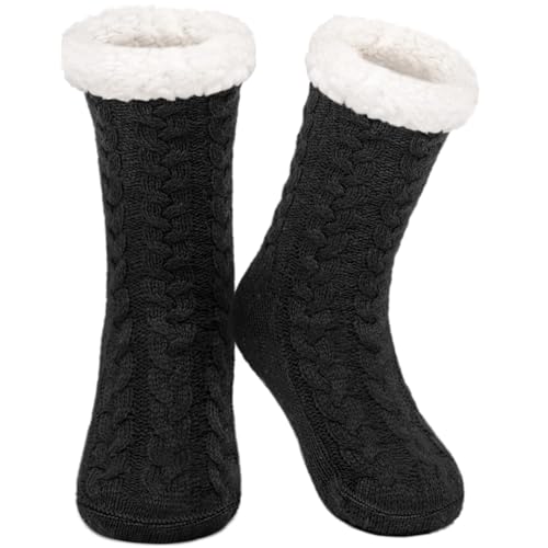 CityComfort Slipper Fluffy Socks for Women Men Heat Holding Sock Knitted Socks Wool Sherpa Fuzzy Bed Slippers One Size Non Slip (Black)