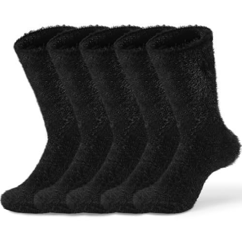 MOCOCITO 5 Pairs Fluffy Socks Womens Stocking Fillers black fluffy socks Winter Soft Comfy House Thermal Sleeping Bed Christmas socks 4.5-9
