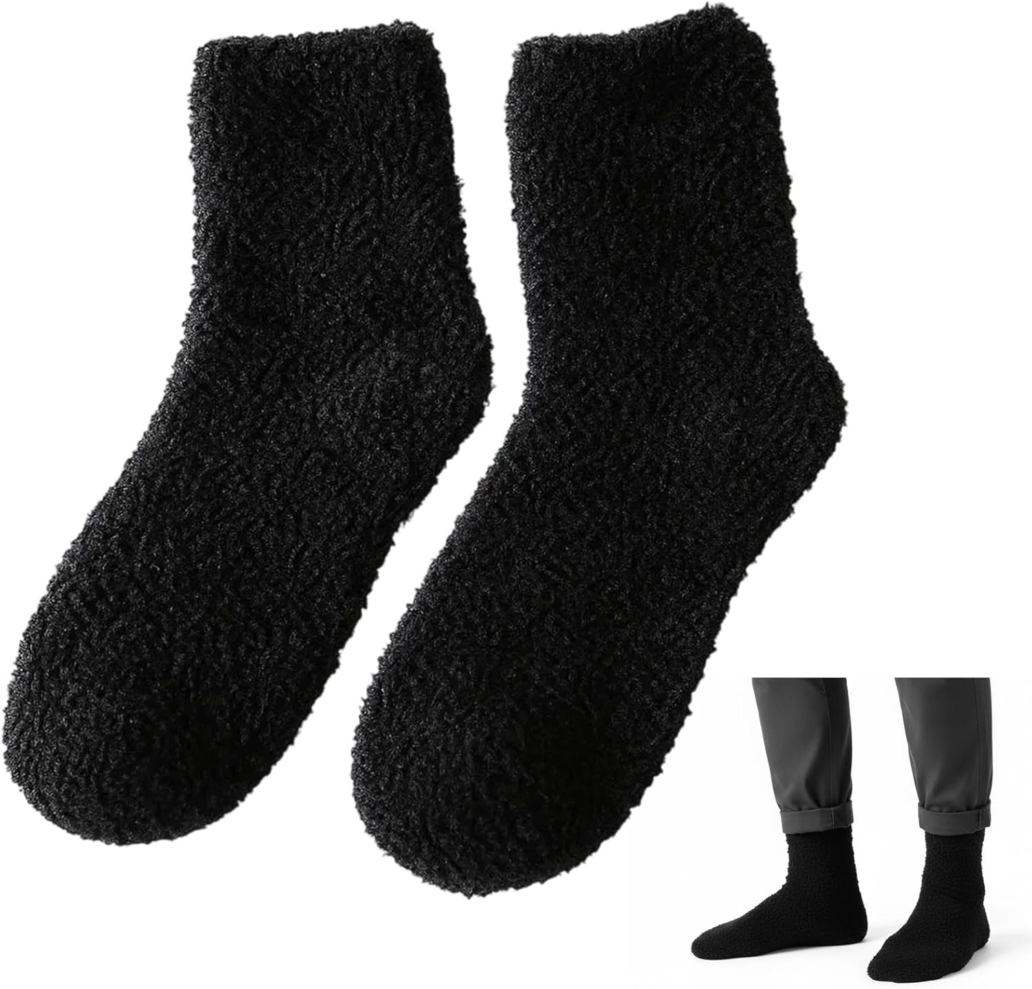 BESPORTBLE Men's Coral Fleece Sleep Socks Warm Thick Fluffy Ankle Floor Socks for Bed Soft Thermal Comfort One Black