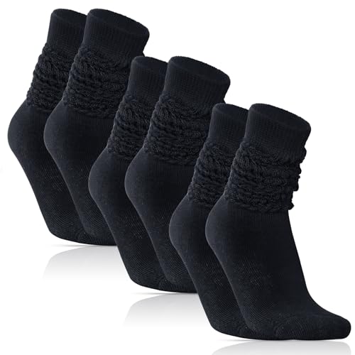 Fanshiontide 3 Pairs of Women's Slouch Socks,Medium Length Fluffy Socks,Women's Extra Long Scrunch Knee High Boot Socks Black