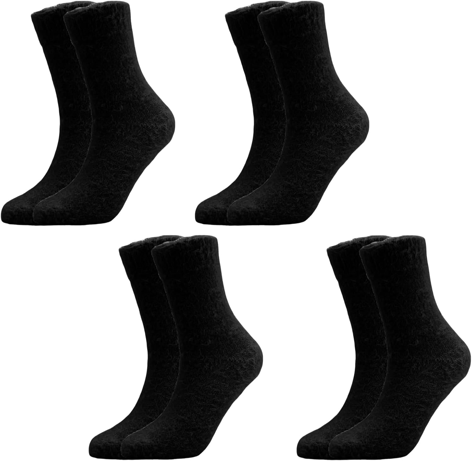 Zuimei 4 Pairs Women's Black Fluffy Winter Socks - Warm Thick Fuzzy Soft Coral Fleece Floor Socks for Sleeping, Home - Cozy Bed Slippers