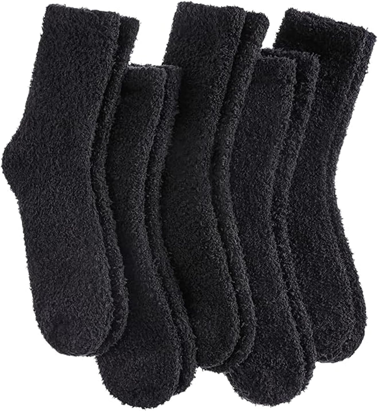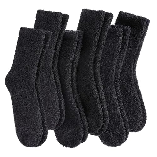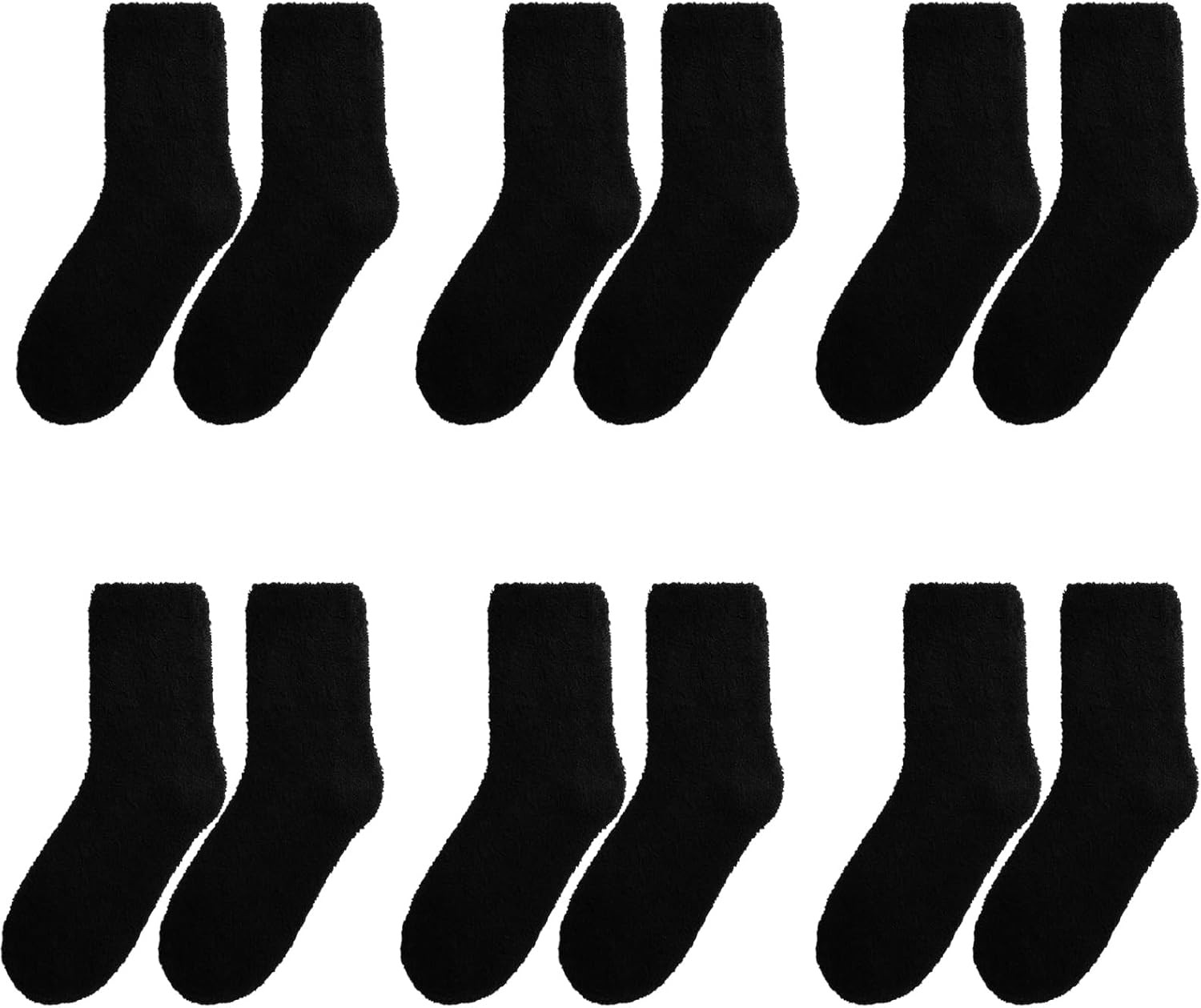 Yulun 6 Pairs Womens Fuzzy Socks Cozy Fluffy Winter Warm Slipper Socks Microfiber Soft Home Sleeping Socks for Winter Christmas (Black)