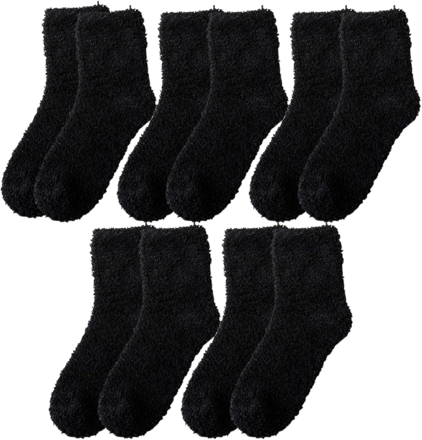 5 Pairs Black Fluffy Socks for Women and Men - Winter Warm Thick Soft Floor Slippers, Size 4-7