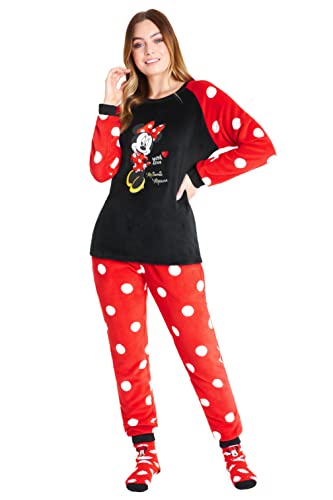 Disney Womens Pyjamas, Fleece Loungewear and Fluffy Socks Stitch Gift Set (Black/Red Minnie, M)