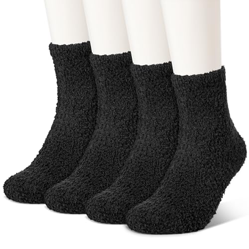 Yulun 4 Pairs Womens Fuzzy Socks Cozy Fluffy Winter Warm Slipper Socks Microfiber Soft Home Sleeping Socks for Valentines Christmas (4 Pairs Black)