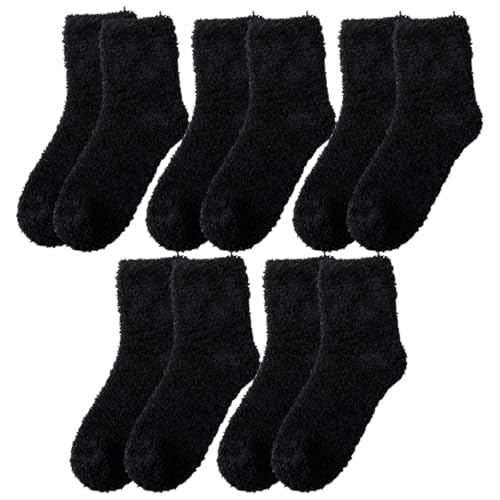 ZPLASK 5 Pairs/10 Pcs Black Fluffy Socks, Fluffy Socks, Winter Warm Thick Soft