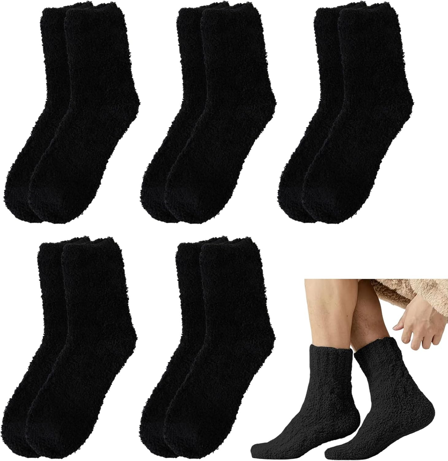 YUEDGE Mens Cozy Black Fluffy Socks Thermal Fuzzy Sleep Bed Socks for Men Size 6-10, Multipack, 5 Pairs