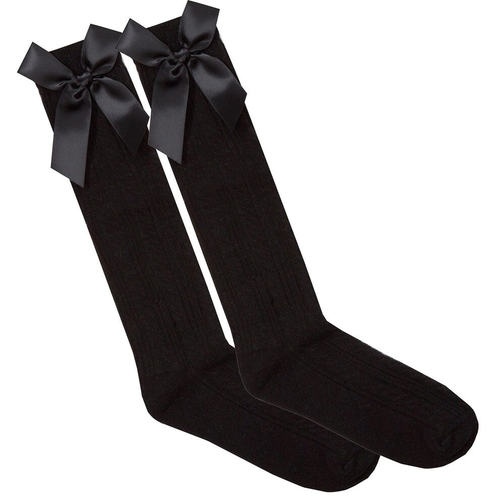 (Black, 9-12 UK) Metzuyan Girls Stocking High Knee Long Socks Bows Frilly