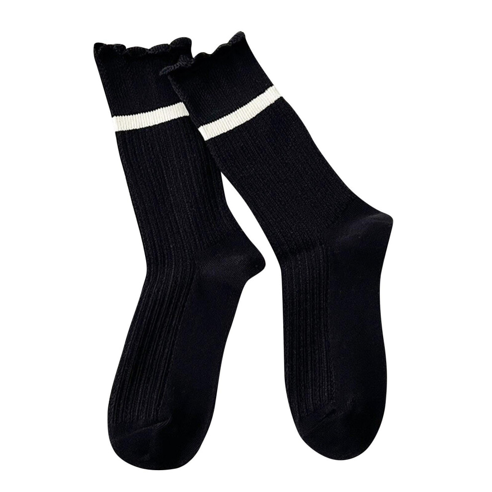Ruffle Socks Women,Soft Frilly Socks for Women Girl Ankle Socks Lettuce Edge Socks Casual Knit Crew Socks Black Free Size