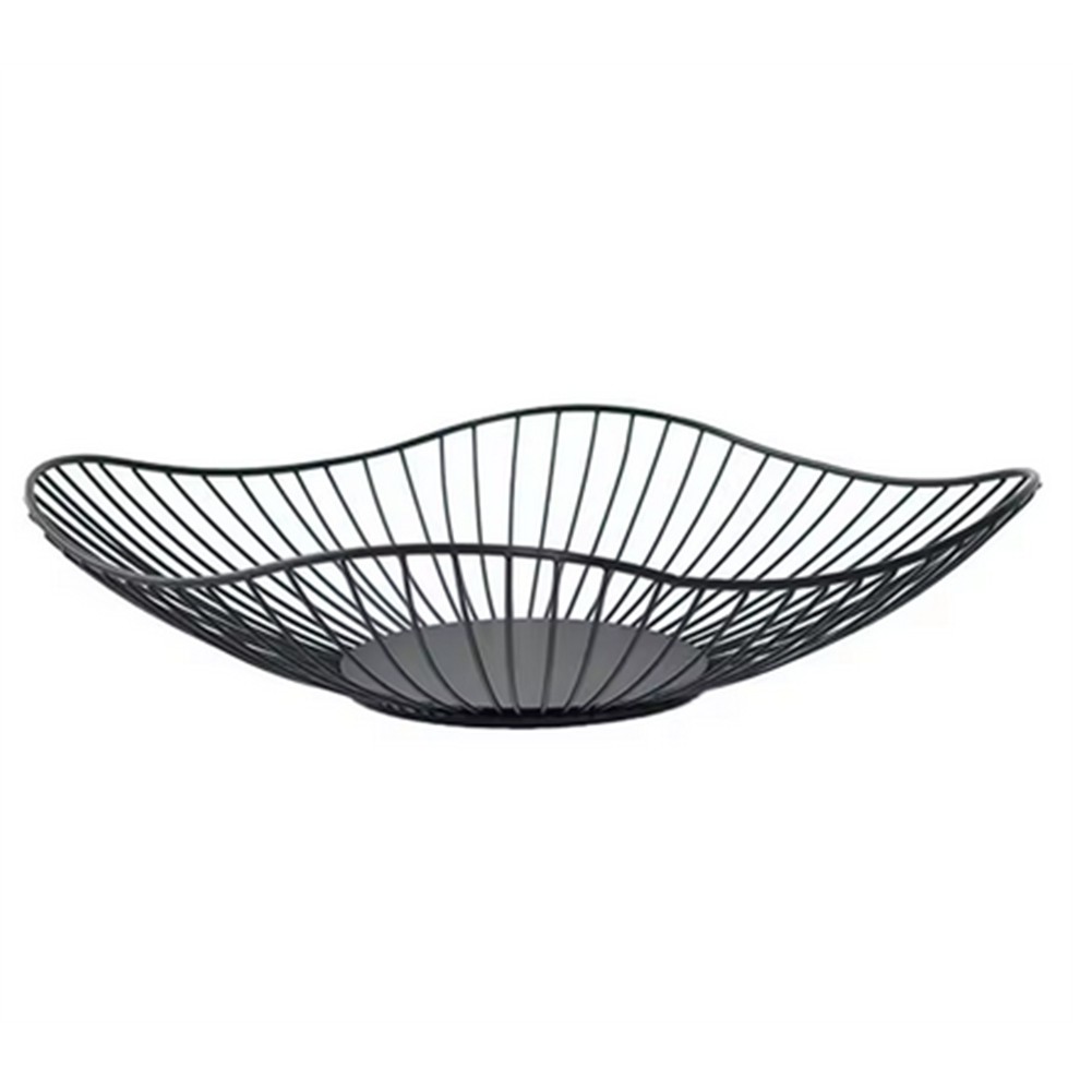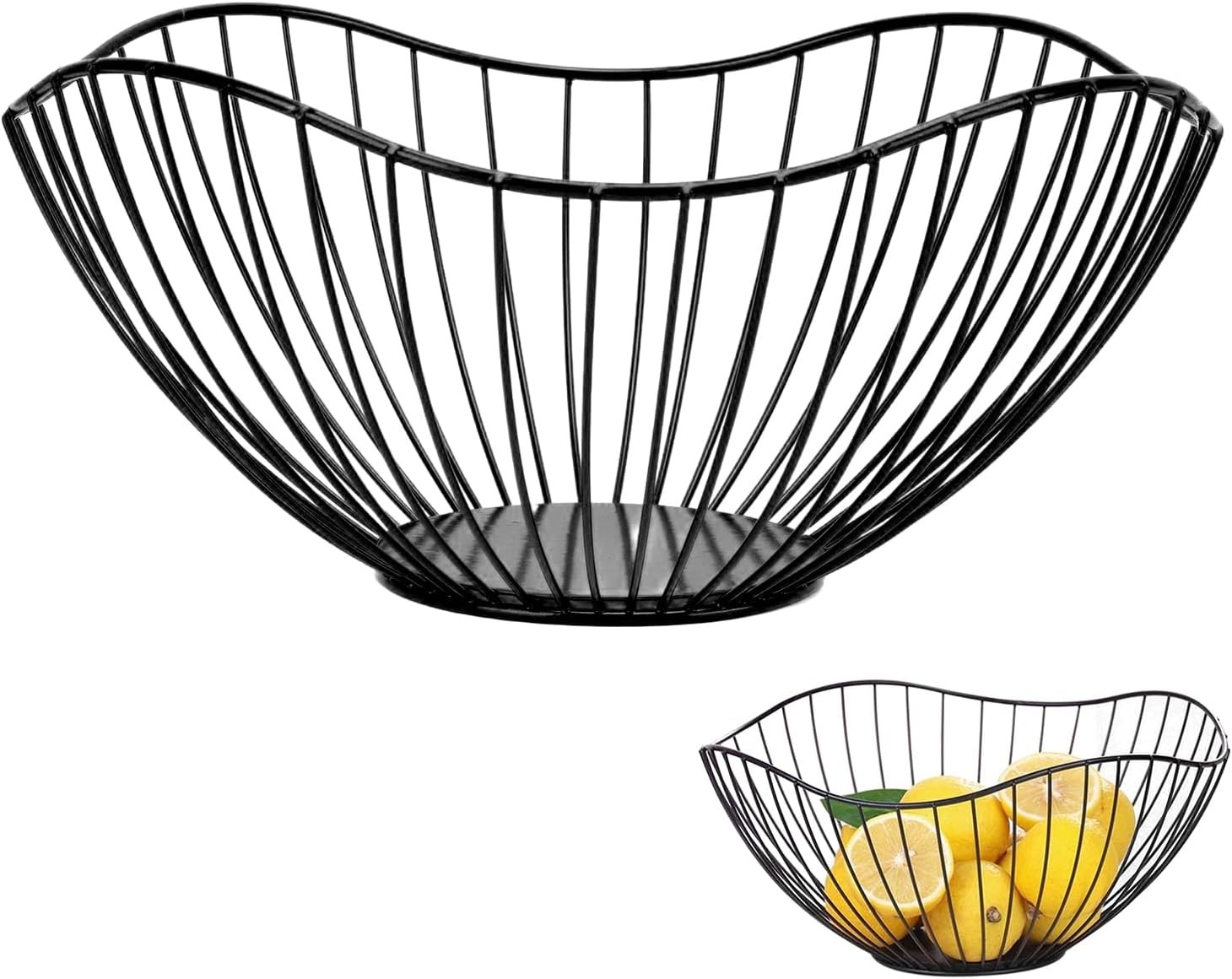 Lunayuomi® Metal Wire Fruit Bowl, Iron Arts Storage Baskets Black-wavy