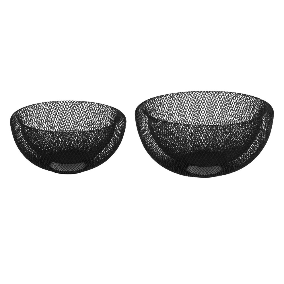 (Black) Fruit Bowl Basket Metal Mesh Vegetable Storage Dining Table Kitchen Large Set 2x