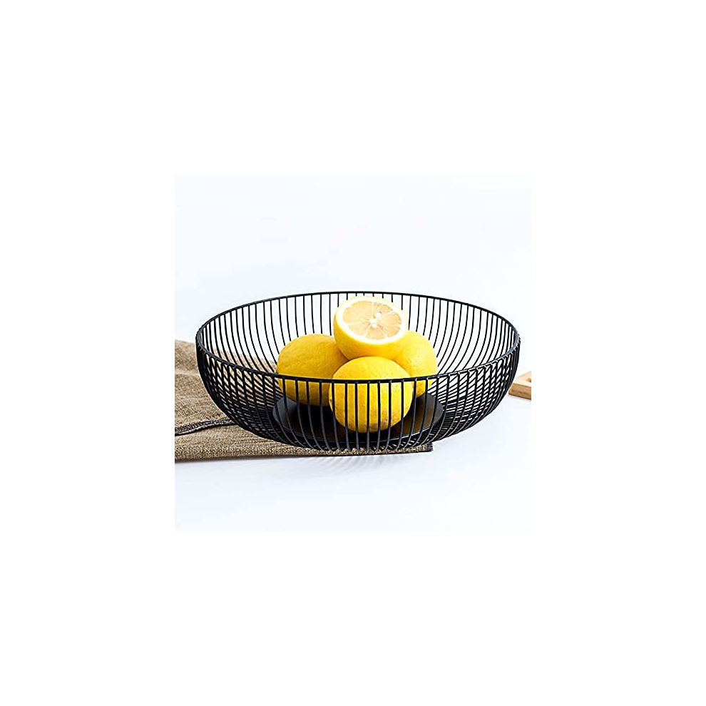 (As show, One size) Fruit Bowls Black Wire Fruit Basket 28x7.5cm Shallow Fruit Basket for Snack Egg Iron Fruit Basket Black Modern Fruit Bowl Conterto
