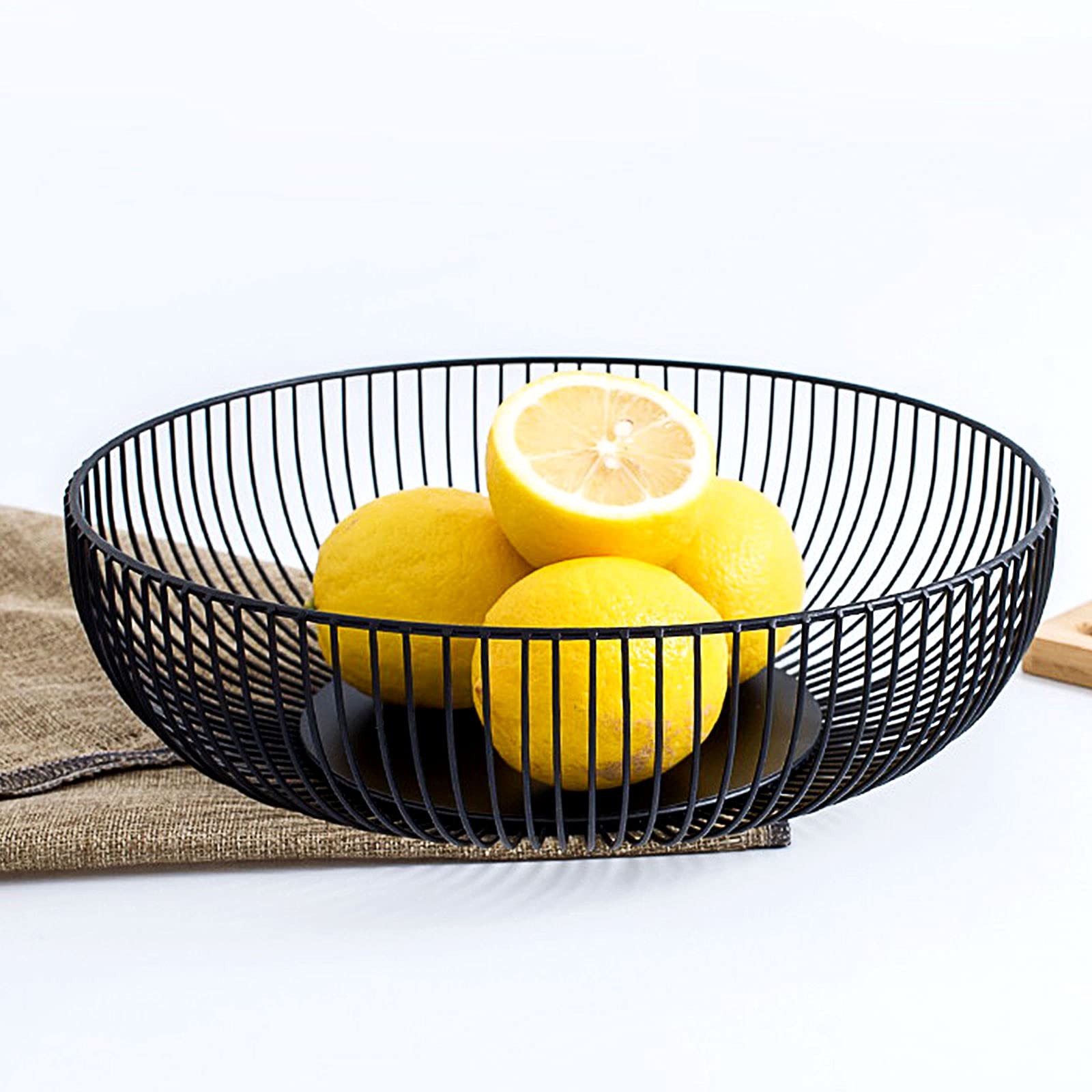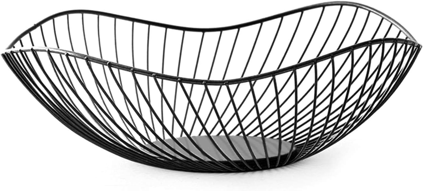 LdawyDE Black Metal Fruit Bowl - Modern Storage Basket, Anti-Rust