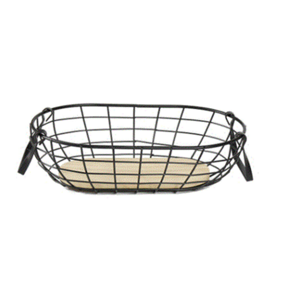 KI6809: Black Wire Fruit/Storage Bowl with Wooden Base - Geometric Metal Centerpiece for Fruit & Snacks on Your Countertop