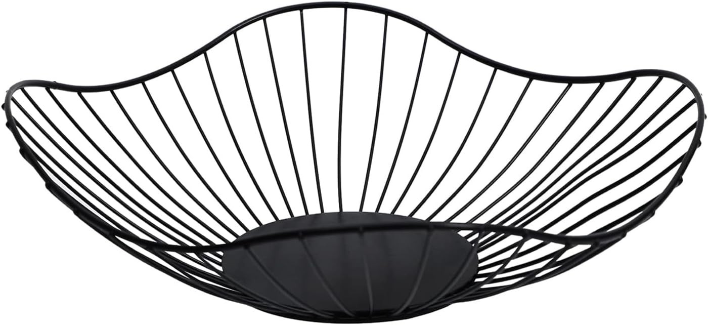 Black Fruit Bowl, 25x14cm Large Wire Fruit Bowl, Metal Black Fruit Basket, Durable