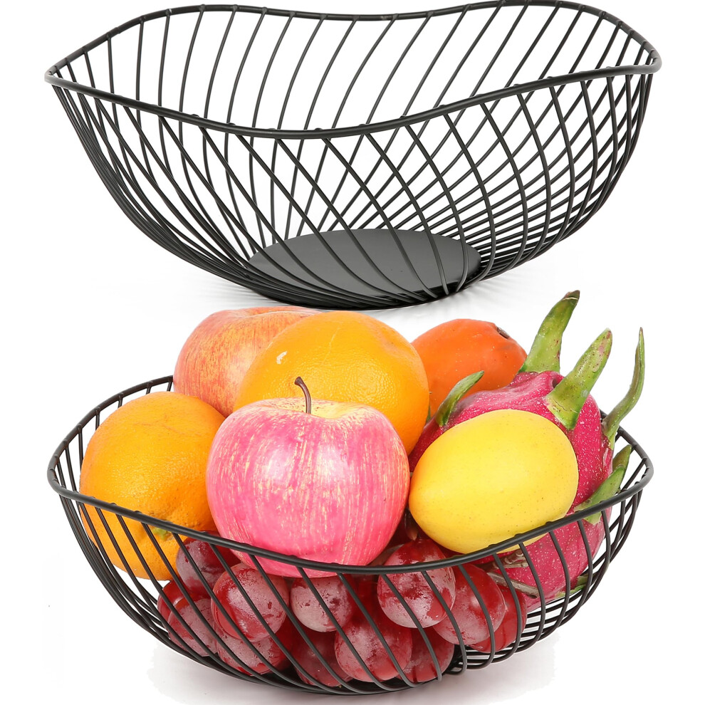 2 PCS Black Wire Fruit Bowl, Wire Fruit Basket Decorate Fruit Basket Bread Snack Vegetable Storage Basket