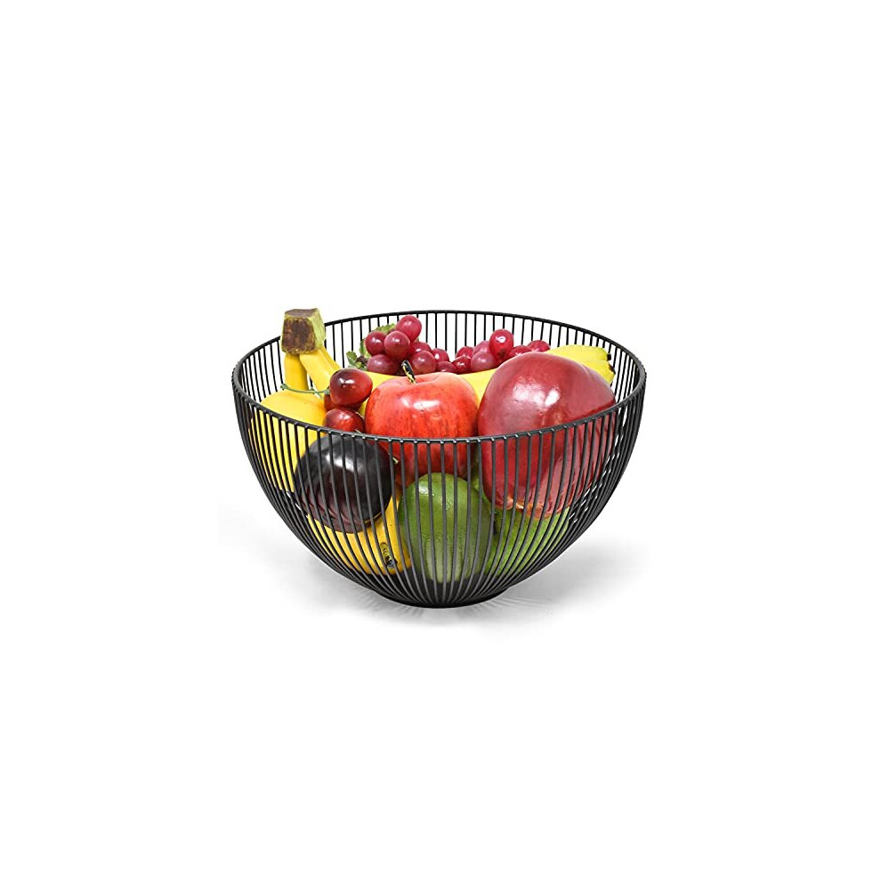 DMAR Black Fruit Bowl, 25x14cm Large Wire Fruit Bowl, Metal Black Fruit Basket, Durable