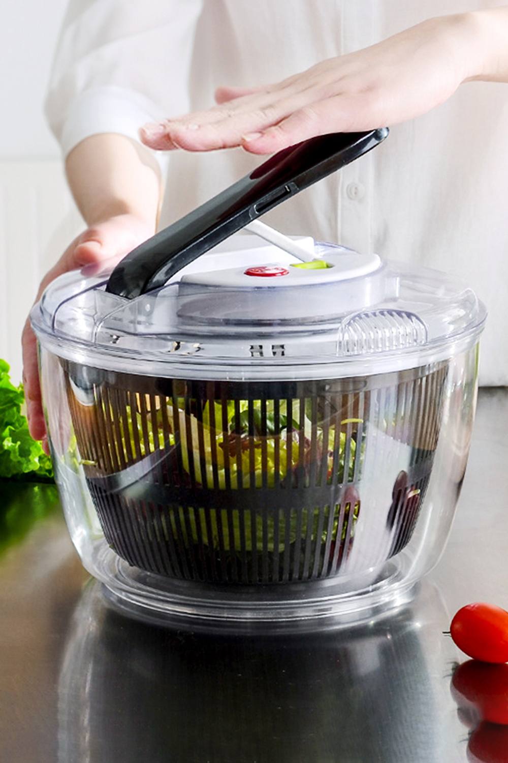 Living and Home 5L Kitchen Manual Salad Spinner Vegetable Fruit Washer Drainer Bowl Basket in Black