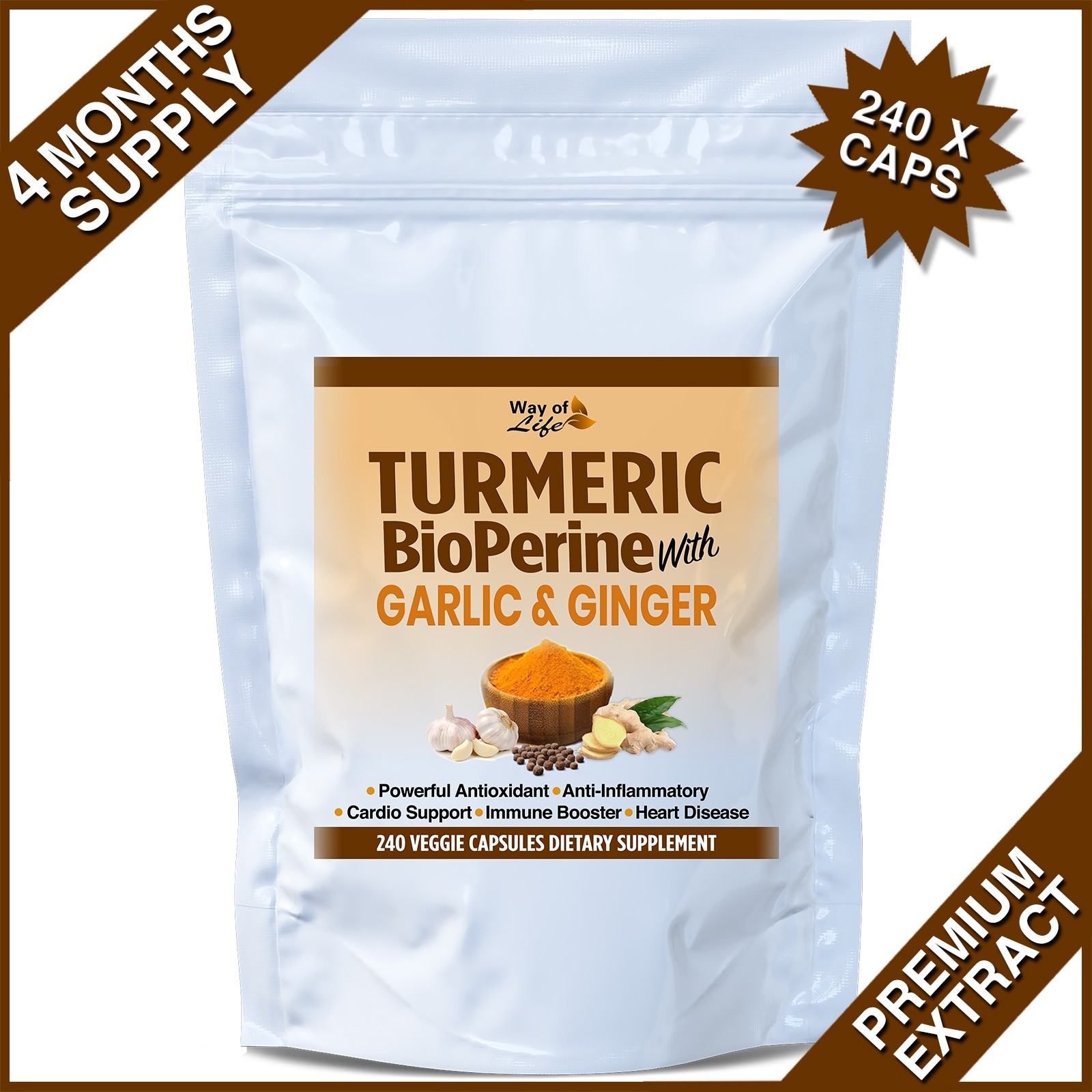 240 X CAPSULES TURMERIC BIOPERINE BLACK PEPPER GARLIC 95% CURCUMIN GINGER PILLS