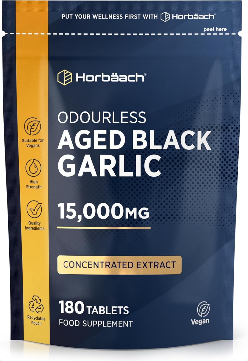 Black Garlic Tablets 15,000Mg | 180 Count | High Strength Odourless Concentrated