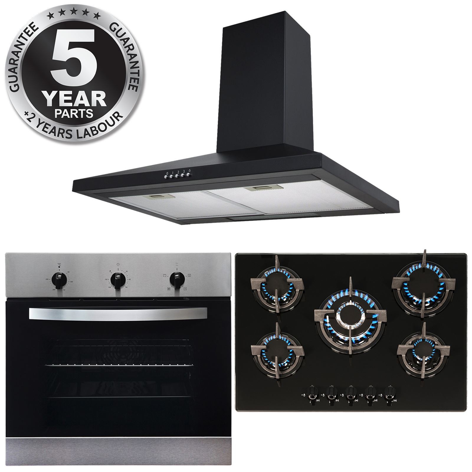 Black gas hob 5 burner