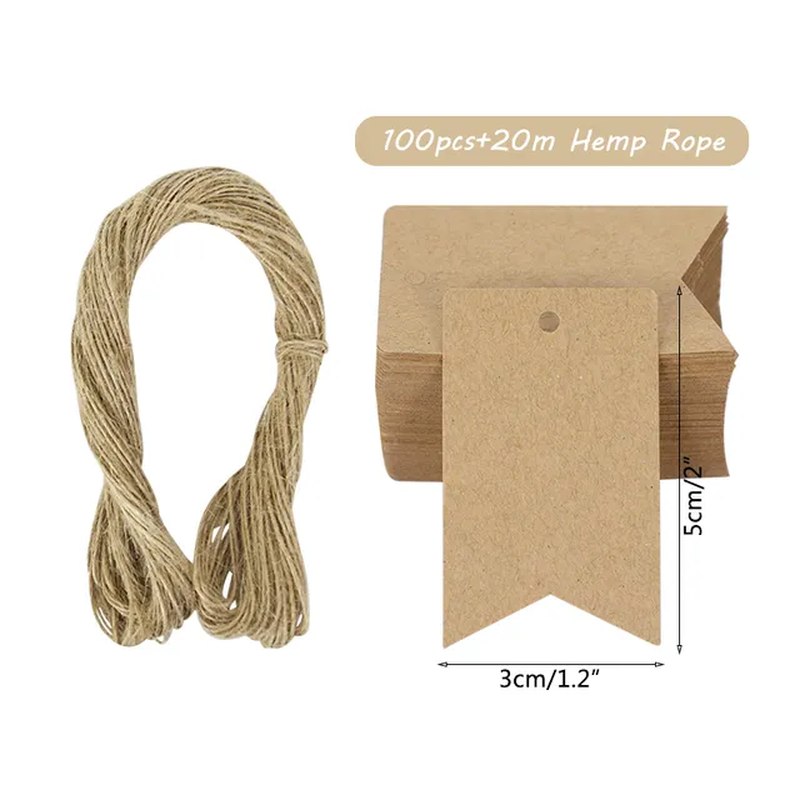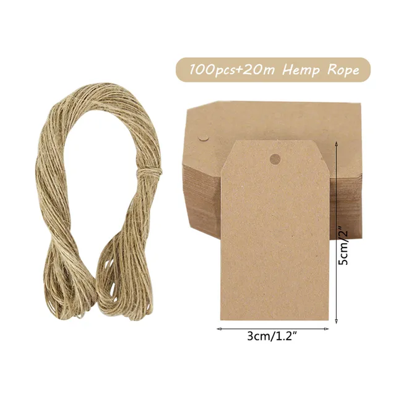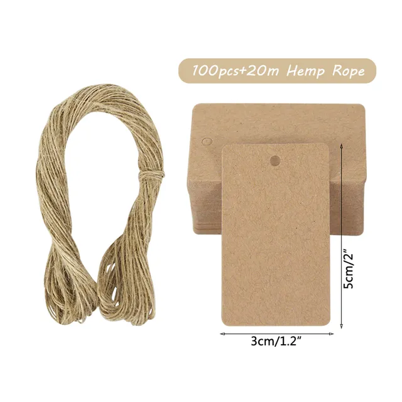 100pcs Brown/White/Black Paper Gift Favors Label Cards With 20 Meters String NEW