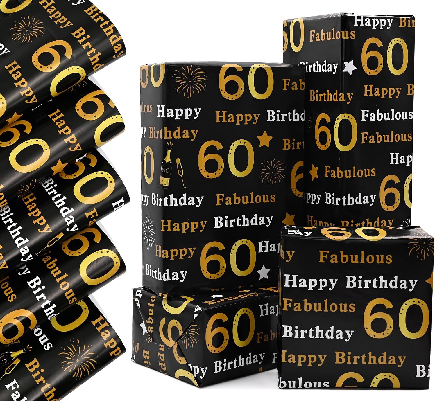 5pcs 50 * 70cm Gold and Black Gift Wrapping Paper Sheets 50cm x 70cm, 60th