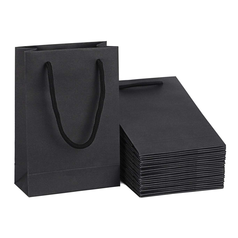driew Black Gift Bags 50 Pack small Black Gift Bags Black Paper Gift Bags with Cotton Handle 5x2x7.5 inches Party Gift Bags