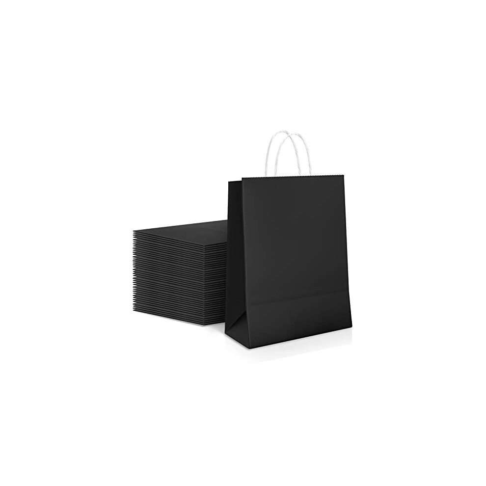 Gcardist 50-Packs Black Paper Gift Bags with Handles Bulk 10.6"x8.3"x4.3" Mediu