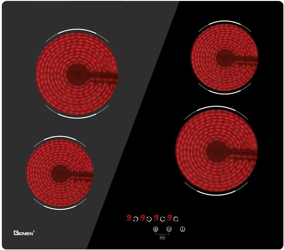 Black glass gas hob 4 burner