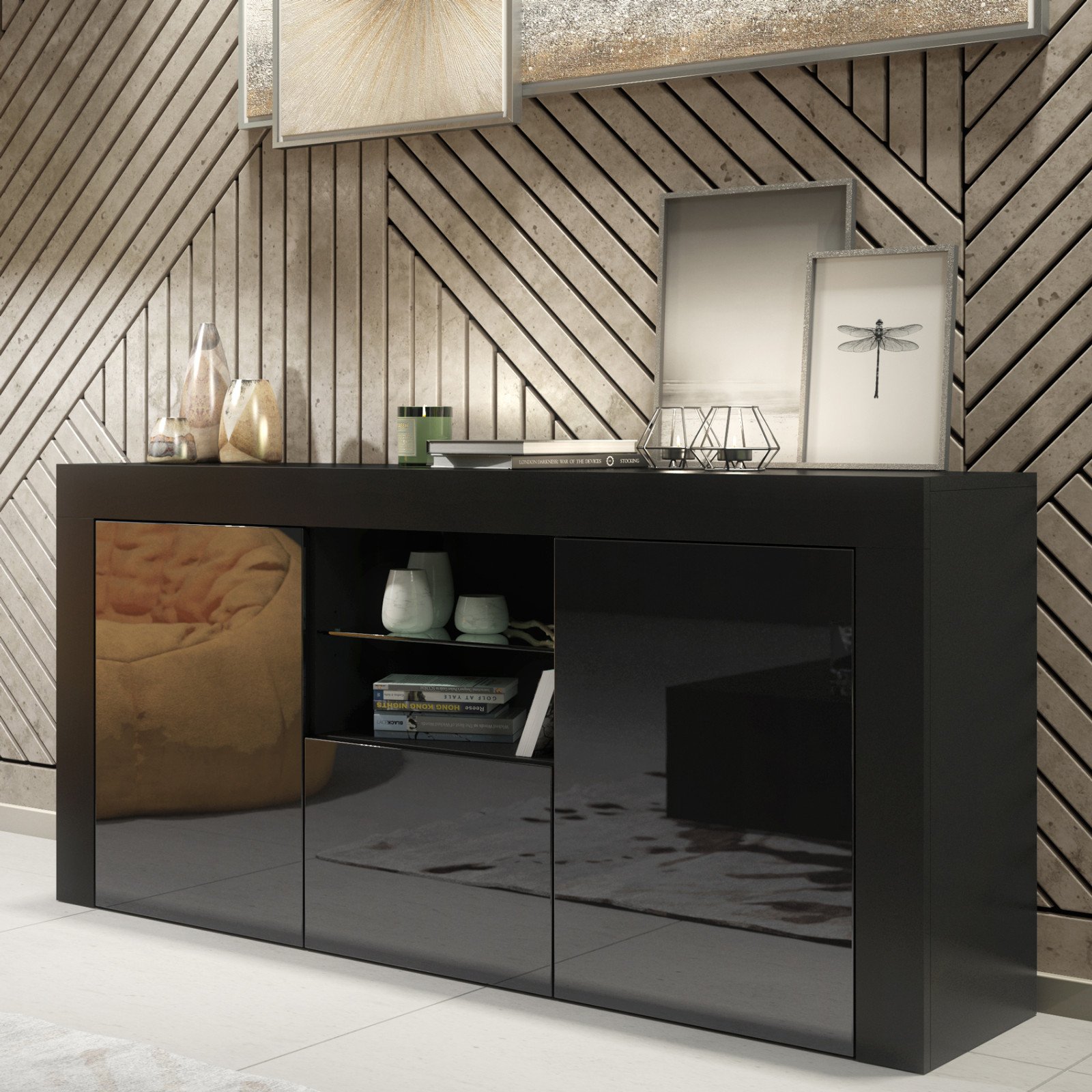 AWOOOD 1800mm LED TV Cabinet Modern High Gloss TV Stand Storage Unit with 3 Doors & Glass Shelves Sideboard for Living Room Bedroom Furniture, Black