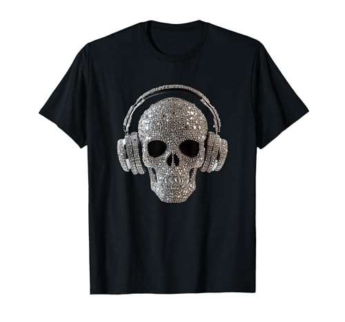Bling Skull with Headphones - DJ Music Lover T-Shirt, Men, Black, Medium